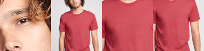 Deep V-neck. Modern fit in feminine contour. A technical blend of micropoly with the natural, soft hand of cotton and the luxury drape of rayon. Fashionable and functional. Inherent moisture wicking. Tear away label. TriTec