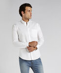 65% polyester/35% cotton poplin. Easy care fabric. Fitted style with bust and back darts. Soft collar. Light blue and white have pearlised buttons - rest have self colour. Double folded seams. Curved hem. Available in 3/4 sleeves, PR305 and long sleeve PR300.
