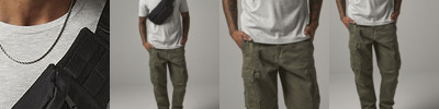 65% polyester/35% cotton. Windproof. Expandable waistband with belt loops. Zip fly with button over. Handwarmer side pockets. Rear pockets. Cargo pockets on both legs. Hammer loop. Critical stress point bar tacking. Twin needle stitched seams.