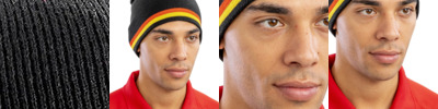 50% acrylic/50% polyester. 3M Thinsulate™ 65% polystyrene/35% polyester inner. Polyester lining. 6 gauge knit. Branding on cuffs. Cut out label.