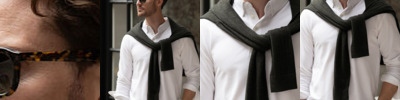 - Rolled forward topstitched shoulder