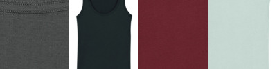 - 1x1 rib with spandex for enhanced stretch and recovery