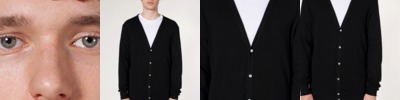 100% acrylic. Modern unisex styling. Set in sleeves. Fashioned V neck. Saddle shoulders. Ribbed knit neck, cuffs and hem.