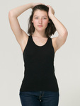 100% ringspun semi-combed cotton.* This item runs small in comparison to some other brands. Please check sizing before decoration. Ladies fit. Ribbed bound neckline and armholes. Racer back style. Tubular body. Twin needle hem.