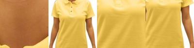 4.1 oz/yd² / 139 gsm, 100% polyester piqué with moisure-wicking, anti-microbial and UV protection performance; Matching flat-knit collar; Heat-sealed label; Four-button placket; Narrow placket for a feminine look; Chest pocket; Side slits;