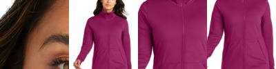 100% polyester heathered wicking knit top body, collar and sleeves * 100% polyester wicking knit solid bottom body * Wicks moisture * Ladies' fit * Tag-free label * Quarter zip pullover style * Set-in sleeves * Dropped tail bottom