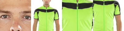 100% polyester. Cool-Dry© textured performance fabric. Lightweight and quick drying. Full length zip. Three pockets on back, middle is a zip key pocket. Reflective piping to front. Bound cuffs. Breathable contrast contour fit panels. Elasticated hem with grip strip. Printed back neck label. Reflective branding on front and back.