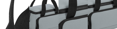 100% recycled polyester. Matte-look PU coating. PVC free. Water repellent fabric. Webbing carry/shoulder straps. Self fabric handle wrap. Extra long main zip compartment. Double layer base panel. Multi-purpose use. Tear out label. Capacity 28 litres.
