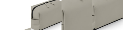 100% recycled polyester. Matte-look PU coating. PVC free. Water repellent fabric. Zip closure. Multi-purpose use. Tear out label. Capacity 2 litres.
