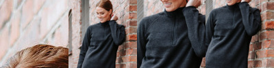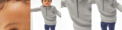80% organic cotton/20% recycled polyester. Organic or in-conversion to organic cotton. Brushed back fleece. Ribbed collar, cuffs and hem. Taped neck. Zip neck with zip guard. Tear out label.