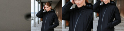 - Three-piece hood with elastic binding at opening