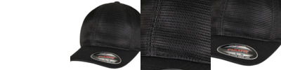 Flexfit cap with breathable mesh, made of polyester and a small amount of elastane, one size fits all, no extra closure needed, 8-fold quilted, pre-bent visor.