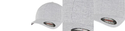 Mottled colored cap with Flexfit technology, made from polyester and viscose with a small percentage of elastane, one size fits all, without extra closure, decorative seams, and pre-bent visor.