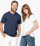 100% organic ringspun combed cotton. Enzyme washed. Straight fit. 1x1 ribbed collar. Taped neck. Side seams. Twin needle sleeves and hem. Tag free.