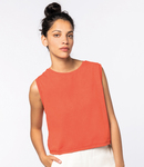 100% organic ringspun combed cotton. Straight fit. 1x1 ribbed neckline and armholes. Taped neck. Side seams. Twin needle hem. Tag free.
