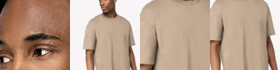100% organic cotton. Carded cotton. Slightly rough to the touch. Oversized fit. 1x1 ribbed collar. Taped neck. Side seams. Single needle sleeves and hem. Tag free.