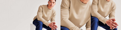 Soft hand feel. Ribbed crew neck. Brushed inner fleece. Twin-needle detail. Cut-and-sew 2x1 ribbed cuffs and hem. Self-coloured neck size label. Relaxed fit.