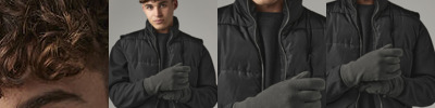 - Stretch polyester sweater knit with 75% recycled polyester, 25% polyester bonded Sherpa fleece interior