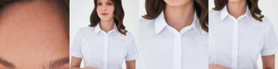 57% polyester/39% cotton/4% elastane. Easy care stretch fabric. Semi-fitted. Rounded collar. Concealed placket. Single yoke. Sleeve vent. Princess seams. Curved hem. Available in long sleeve BK131.