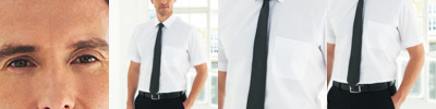 57% polyester/39% cotton/4% elastane. Easy care stretch fabric. Slim fit. Classic collar. Back yoke. Back darts. Two button adjustable cuffs. Curved hem.