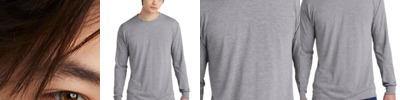 4.5 oz., 65% polyester, 35% combed ringspun cotton Harborside Mélange jersey; Topstitched ribbed collar; Contrast white cotton twill back neck tape; Double-needle sleeves and bottom hem; EasyTear™ label; CPSIA Compliant tracking label in garment;