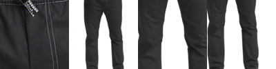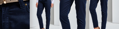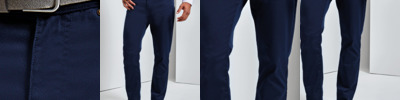 63% polyester/35% cotton/2% elastane. Easy care fabric. Stretch fabric for ease of movement. Belt loops. YKK zip fly with button over. Two side pockets with rivet detail. Rear patch pockets. Domestic wash 60°C.
