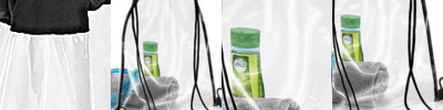 100% transparent TPU. Soft touch, water resistant fabric. Polyester binding. Drawcord carry handles. Reinforced cord channel. Tear out label. Capacity 11 litres.