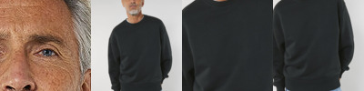 Set-in sleeve. Inside herringbone back neck tape. Self fabric half moon at back neck. Single needle topstitch at neckline. 2x2 rib at sleeve hem and bottom hem. Armhole, sleeve hem and bottom hem with twin needle topstitch. Relaxed fit with 350gsm brushed fabric.