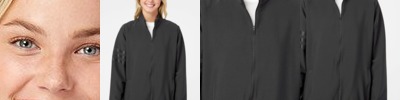 1.5 oz/yd2 / 58 gsm, 100% polyester taffeta; Water-resistant; Center front closure with dyed-to-match plastic snaps; Underarm eyelets for breathability; Lower front pockets with snap closures; Draw cord at bottom hem;