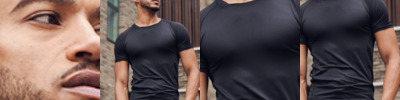 90% polyester/10% elastane. Slim fit. Self fabric neckline. Raglan sleeves. Mesh side panels and back yoke. Flatlock stitching. Twin needle sleeves and hem. Tear out label.