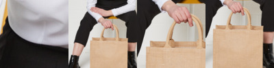 Laminated jute/cotton canvas. Heavyweight fabric. Woven carry handles (40cm long). Tear out label. Capacity 18 litres. Hand wash only.