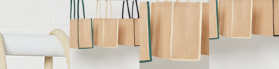 Laminated jute/cotton canvas. Heavyweight fabric. Contrast woven carry/shoulder straps (60cm long). Contrast trim. Tear out label. Capacity 26 litres. Hand wash only.