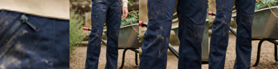 65% polyester/35% cotton. Part elasticated waistband with belt loops. Zip fly with button over. Two side pockets, one with coin pocket. Two zip pockets. Two rear pockets - one patch, one welt. Reinforced crotch seam. Right thigh zip pocket. Knee pad pockets. Triple stitched seams. Cut out label. Knee pads available RG282.