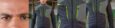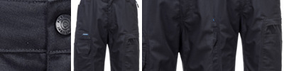 - Reinforced fabric overlayed on shoulders, back yoke, front placket, chest pocket, and hand pockets