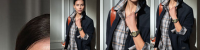 - Self-fabric closure with antique brss metal buckle & tuck-in grommet