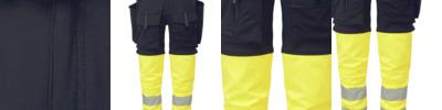 Hammer loop for secure storage of work tools. Double rule pocket. Fully lined and padded to trap the heat and increase warmth. Adjustable hem to accommodate all leg lengths. Top-loading kneepad pockets for quick and easy access. Easy-access cargo pocket. Zip-off holster pockets for added versatility. Abrasion-resistant Oxford polyester.