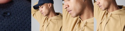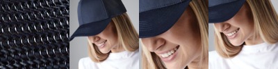 TearAway label for ease of rebranding 6 panel design Structured front panels Stitched ventilation eyelets Pre-curved peak Cotton twill underpeak Cotton twill sweatband Self fabric strap with tri-glide buckle