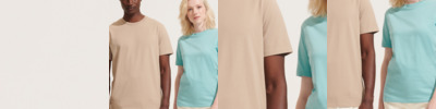 100% organic combed cotton.* Organic or in-conversion to organic cotton. Ribbed collar. Taped neck. Side seams. Twin needle stitching. Unbranded size label at neckline.