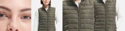 Polyester outer and lining. Polyester down padding. Showerproof. Lightweight. Collar high full length nylon zip. Elasticated bound armholes and hem. Two front zip pockets. Packs into unbranded storage bag. Unbranded size label.