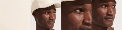 100% brushed organic cotton. 5 panel. Stitched ventilation eyelets. Reinforced peak and front panel. Self fabric size adjuster with metal buckle.