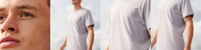 60% cotton/40% polyester. Relaxed comfortable fit. Ribbed collar. Taped neck. Side seams. Twin needle stitching. Tear out label.