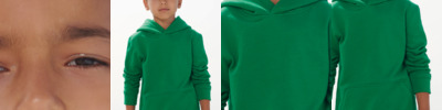 85% organic combed cotton/15% recycled polyester.* Organic or in-conversion to organic cotton. Cotton faced fabric. Three yarn construction. Unbrushed inner. Drop shoulder style. Jersey lined hood with self colour drawcord. Metal drawcord tips and eyelets. Taped neck. Jersey half moon locker patch. Front pouch pocket. 2x2 ribbed cuffs and hem. Unbranded size label.