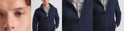 Two layer soft shell. 94% recycled polyester/6% elastane outer layer bonded with micro fleece inner layer. Plant based fluorine and PFC showerproof finish. Cadet collar. Full length front zip with chin guard and inner zip guard. Two front zip pockets. Open cuffs and hem.