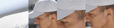 100% ripstop recycled polyester. Cotton sweatband. 6 panel. Stitched ventilation eyelets. Pre-curved peak. Contrast sandwich peak. Self fabric strap with tri-glide buckle. Tear out label.