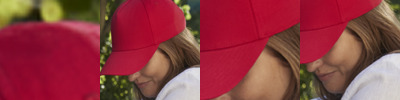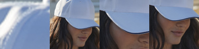 100% organic cotton twill. 5 panel. Contrast sandwich peak and stitched ventilation eyelets. Pre-curved peak. Self fabric strap with contrast tri-glide buckle. Tear out label.