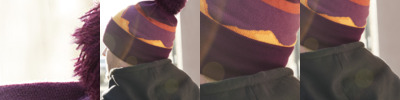 95% recycled polyester/4% nylon/1% elastane. Double layer knit. Pull on style. Bold mountain scape design. Tear out label.