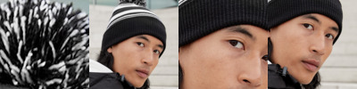 100% recycled polyester.* Ribbed knit. Double layer knit. Engineered crown. Wide cuff. Tear our label.
