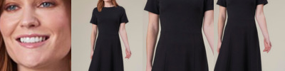 67% viscose/29% nylon/4% elastane. Unlined. Fit and flare style. Short sleeves. Concealed rear zip. Two bust darts. Waist seam detail. Machine washable.