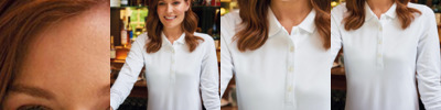 95% cotton/5% elastane. Easy care, breathable fabric. Tailored fit. Four button placket. Side vents. Ribbed cuffs. Twin needle hem.