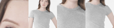 90% airlume combed ringspun cotton/10% polyester. Pre-shrunk. Fitted style. 1x1 micro rib. Bound neckline. Side seams. Cropped length. Tear out label.